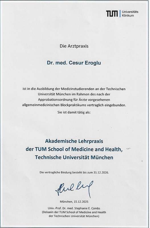 Praxis Dr. Eroglu ist eine akademische Lehrpraxis der Medizinischen Fakultät der Technischen Universität München